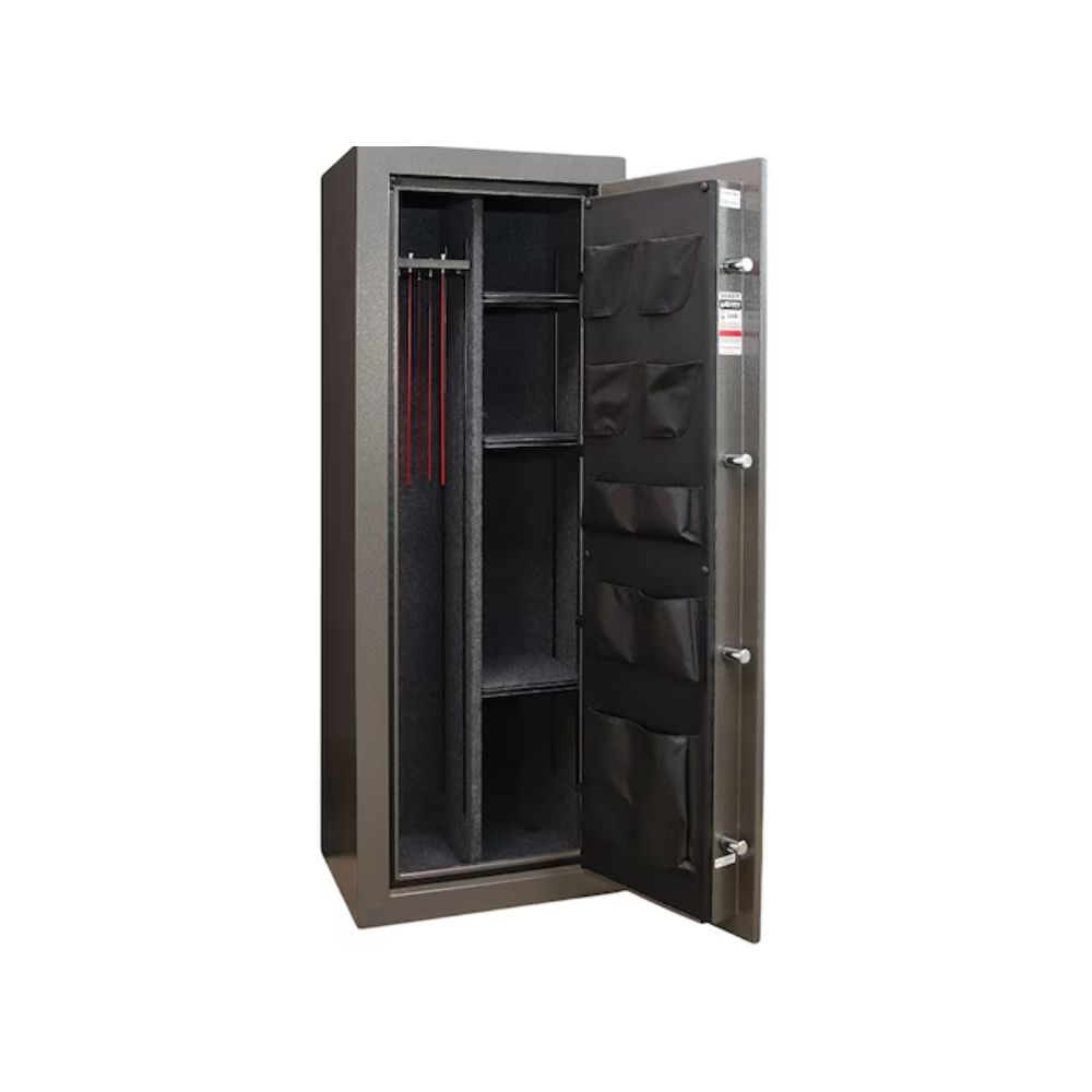 Winchester’s Bandit gun safes provide great capacity and protection for a great price. The Bandit is a 45-minute fire rated model built with rugged 14-gauge steel. Store long guns vertically with included GunStiXX, their popular new system that allows you to increase your safe’s gun storage capacity compared to similar size gun safes.