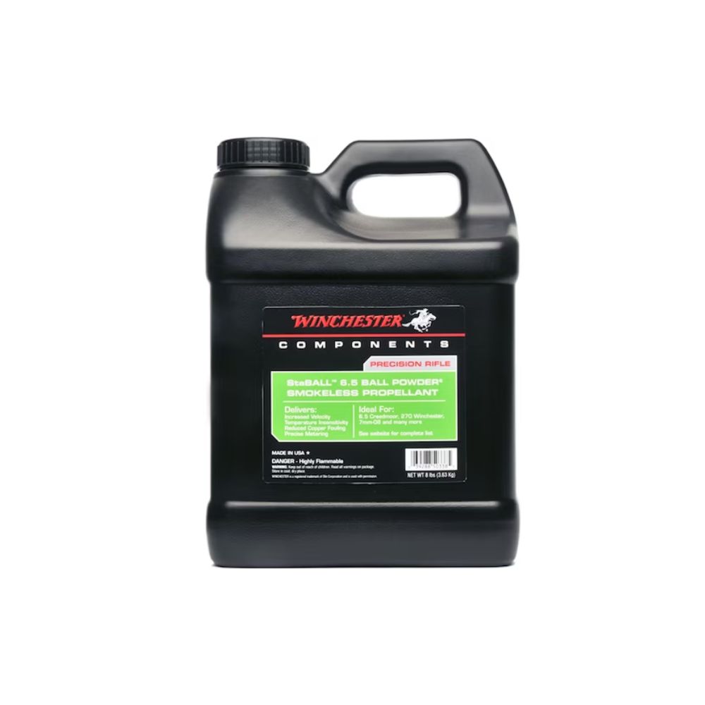 Winchester StaBall 6.5 Smokeless Gun Powder is the world’s first temperature-insensitive ball powder, delivering stability in extreme heat or cold. Perfect for cartridges like the 6.5 Creedmoor, 6GT, 7MM-08, and more, StaBall 6.5 offers optimal loading density and precision metering, ensuring match-grade accuracy with minimal velocity and pressure deviations.